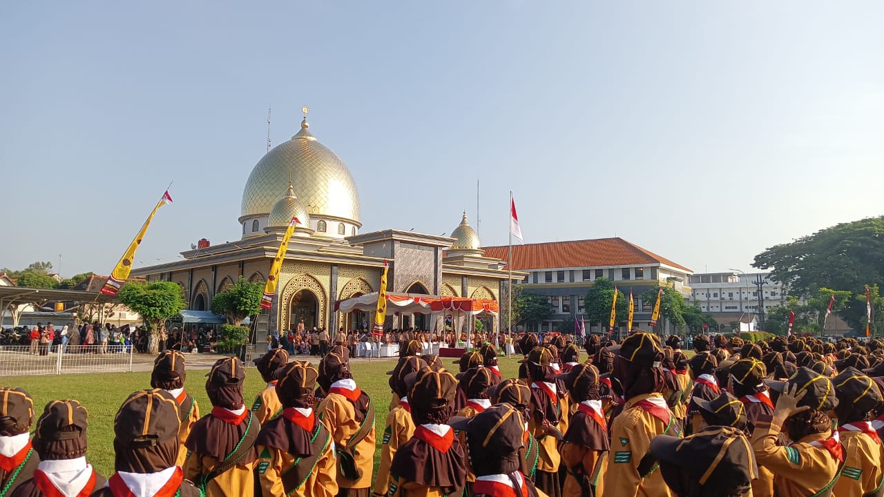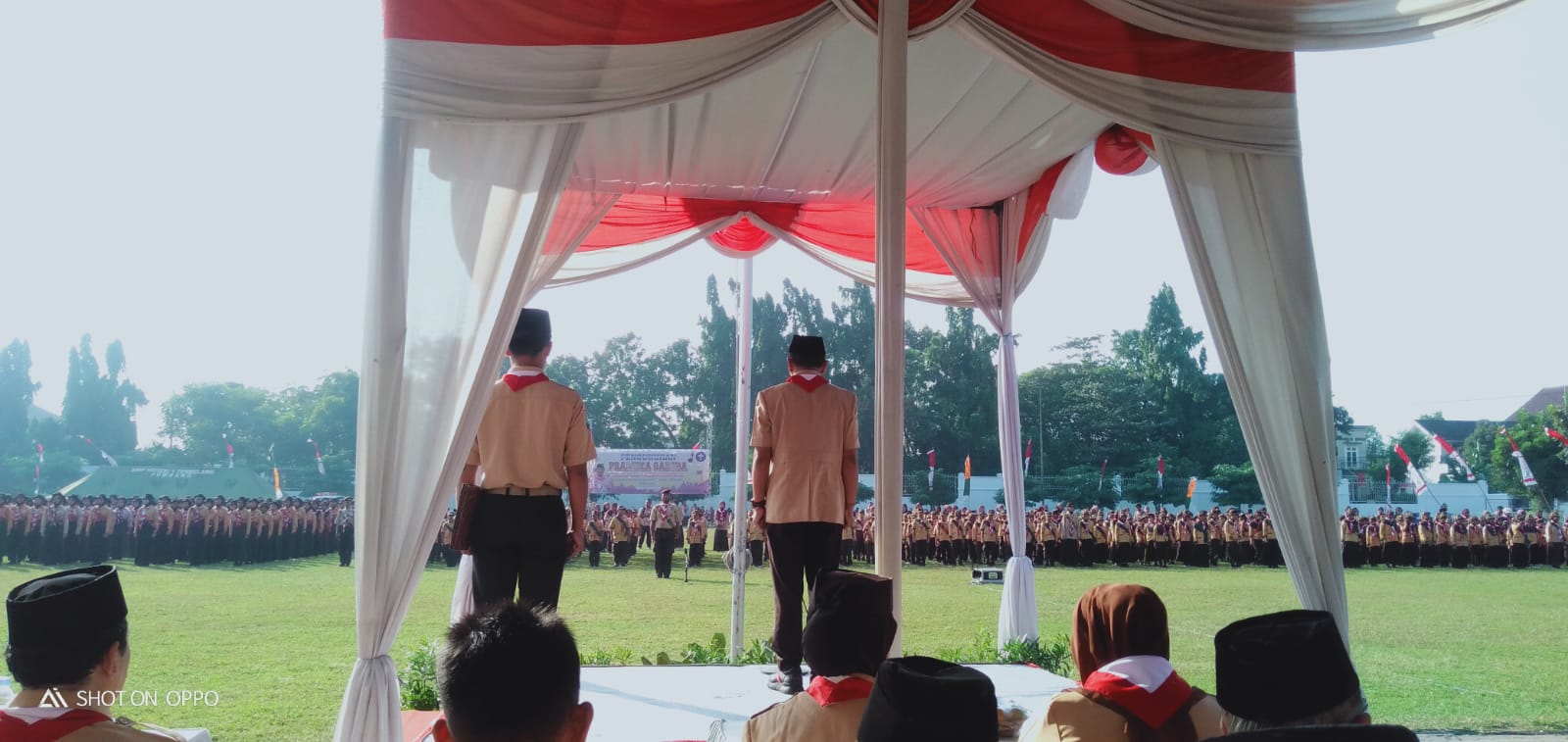 ADIK-ADIK YANG LULUS UJIAN SKU DAN SKK DI KWARRAN GERAKAN PRAMUKA JOGOROTO MENGIKUTI PELANTIKAN PRAMUKA GARUDA KWARCAB JOMBANG DI LAPANGAN PEMERINTAH KABUPATEN JOMBANG TANGGAL 10 AGUSTUS 2024