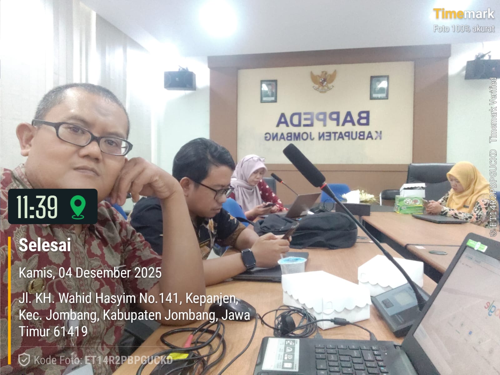 Pada hari Kamis, tanggal 4 Desember 2025, di Ruang Rapat I Lantai 1 Bappeda Kabupaten Jombang, mulai pukul 12.30 WIB s/d selesai, Plt Kasi Sosbud Kecamatan Jogoroto mengikuti Bimbingan Teknis Penyusunan Dokumen Perencanaan dan Penganggaran Responsif Gender Tahun 2026 melalui Aplikasi Si Peran Sinder. Penyelenggara Bappeda Kabupaten Jombang.