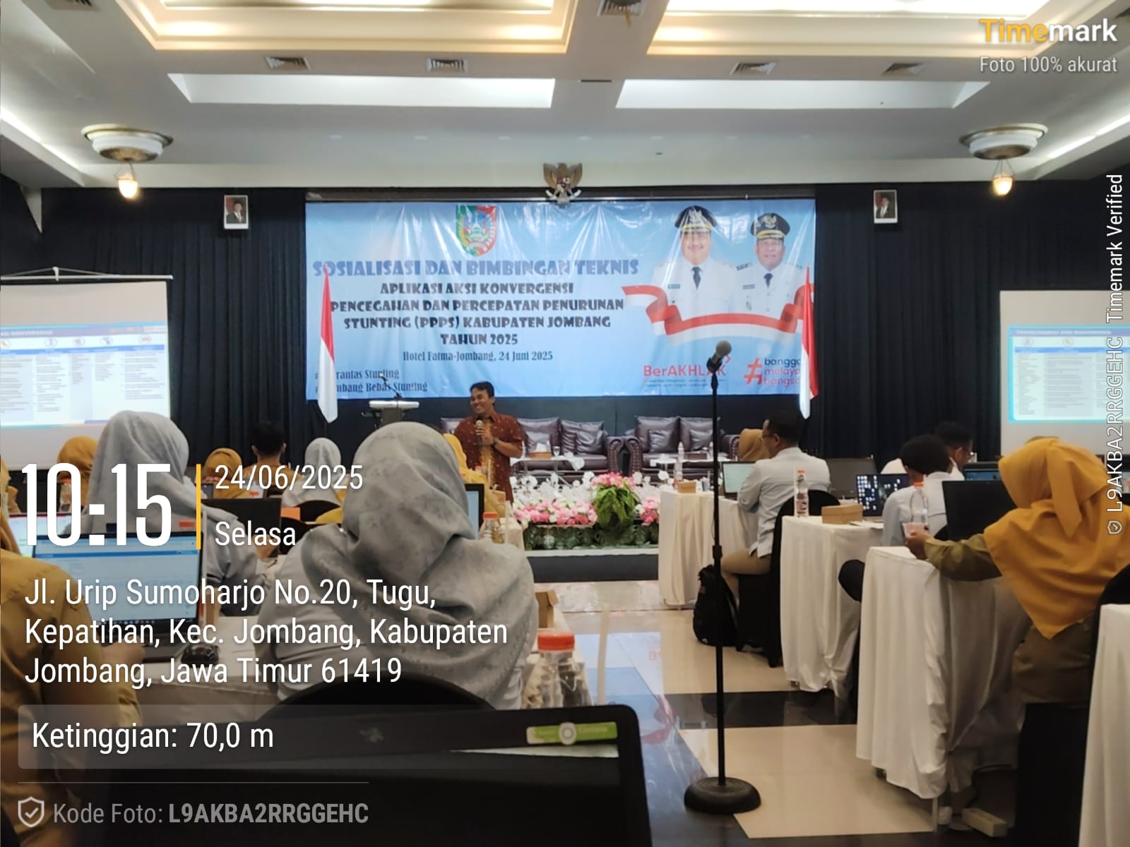 Pada hari Selasa, tanggal 24 Juni 2025, di Ruang Setjo Adiningrat Setdakab Jombang, mulai pkl. 09.00 WIB s/d selesai, Kasi Trantib Kecamatan Jogoroto menghadiri Sosialisasi dan Bimtek Konvergensi PPPS (Pencegahan dan Percepatan Penurunan Stunting). Yang mengundang Sekretaris Daerah Kabupaten Jombang, Leading Sektor Bappeda Kabupaten Jombang, yang diundang OPD terkait.