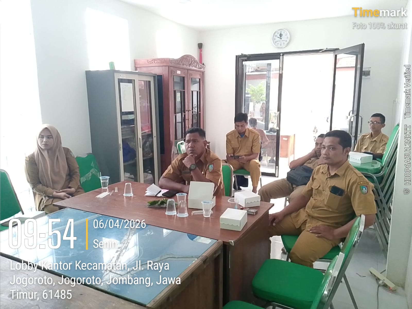 Pada hari Senin, tanggal 06 April 2026, di Ruang PKK Kecamatan Jogoroto, mulai pukul 09.00 WIB s/d selesai, Kaur Kesra dan Operator SIGN-NG Se Kecamatan Jogoroto mengikuti Zoom Meeting Sosialisasi Penyaluran Bantuan Pangan Beras dan Minyak Goreng Bulan Pebruari dan Maret 2026 Kabupaten Jombang. Yang mengundang Perum BULOG Cabang Mojokerto, yang diundang instansi terkait. Rapat dipimpin Sekretaris Daerah Kabupaten Jombang.