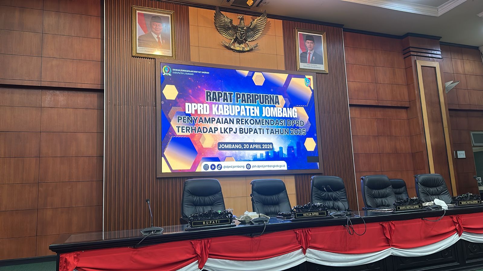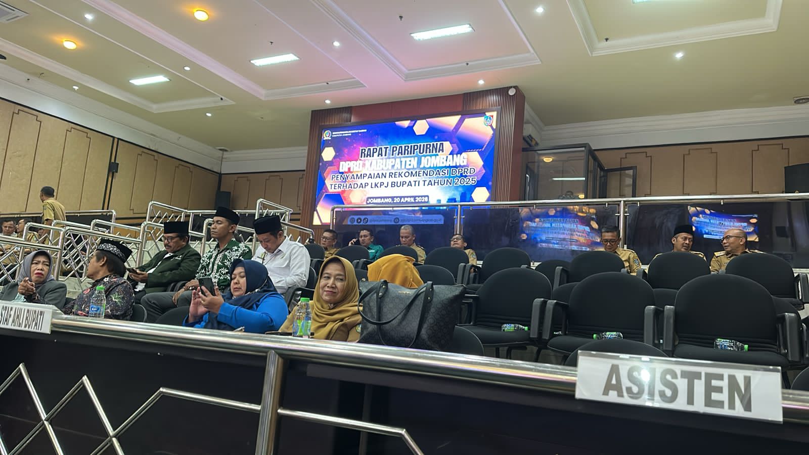 Pada hari Senin, tanggal 20 April 2026, di Ruang Rapat Paripurna DPRD Kabupaten Jombang, pukul 09.00 WIB s/d selesai, Kasi Tata Pemerintahan mewakili Camat Jogoroto menghadiri Rapat Paripurna Penyampaian Rekomendasi DPRD Terhadap LKPJ Bupati Tahun 2025.