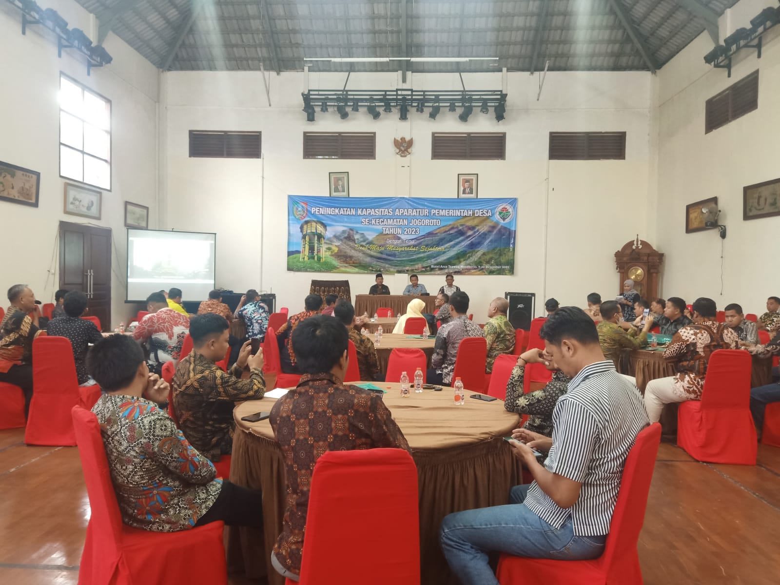 Pada hari Sabtu dan Minggu, tanggal 09 - 10 Desember 2023, dilaksanakan kegiatan Bimtek Peningkatan Aparatur Pemerintah Desa Bagi Kades, Sekdes Dan Bendahara Desa se Kecamatan Jogoroto dengan laporan sebagai berikut :