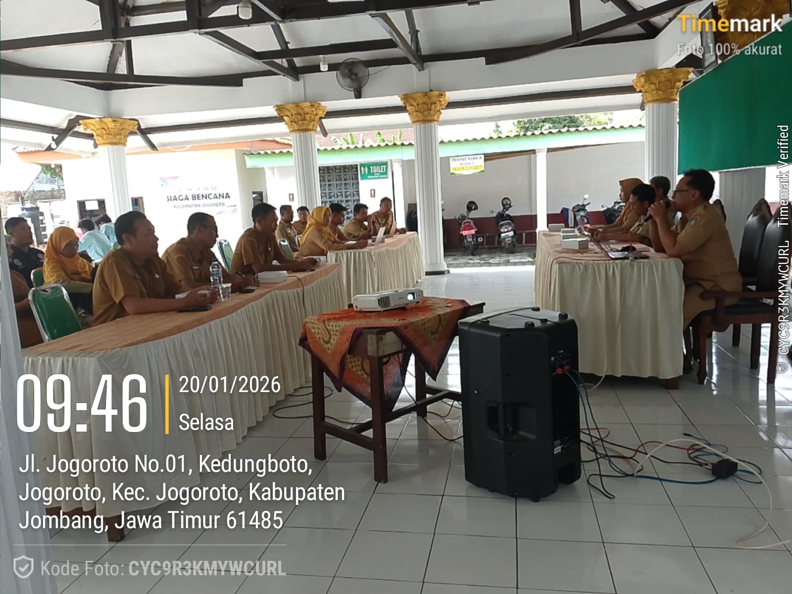 Pada hari Selasa, tanggal 20 Januari 2026, di Pendopo Kecamatan Jogoroto, mulai pukul 08.00 WIB s/d selesai, dilaksanakan Kegiatan Pra Musrenbangcam Tahun 2027 di Kecamatan Jogoroto. Yang mengundang Camat Jogoroto, yang diundang Kepala Desa dan Sekretaris Desa se Kecamatan Jogoroto, narasumber dari Dinas PUPR dan Dinas Perhubungan Kabupaten Jombang. Dari Kecamatan rapat dipimpin Sekcam didampingi Kasi PMD lama dan baru karena bersamaan dengan masa transisi.