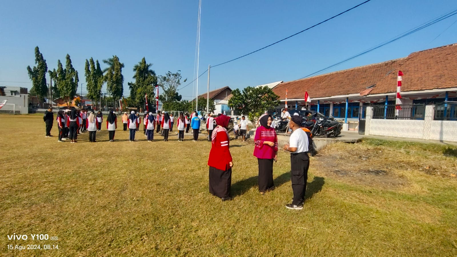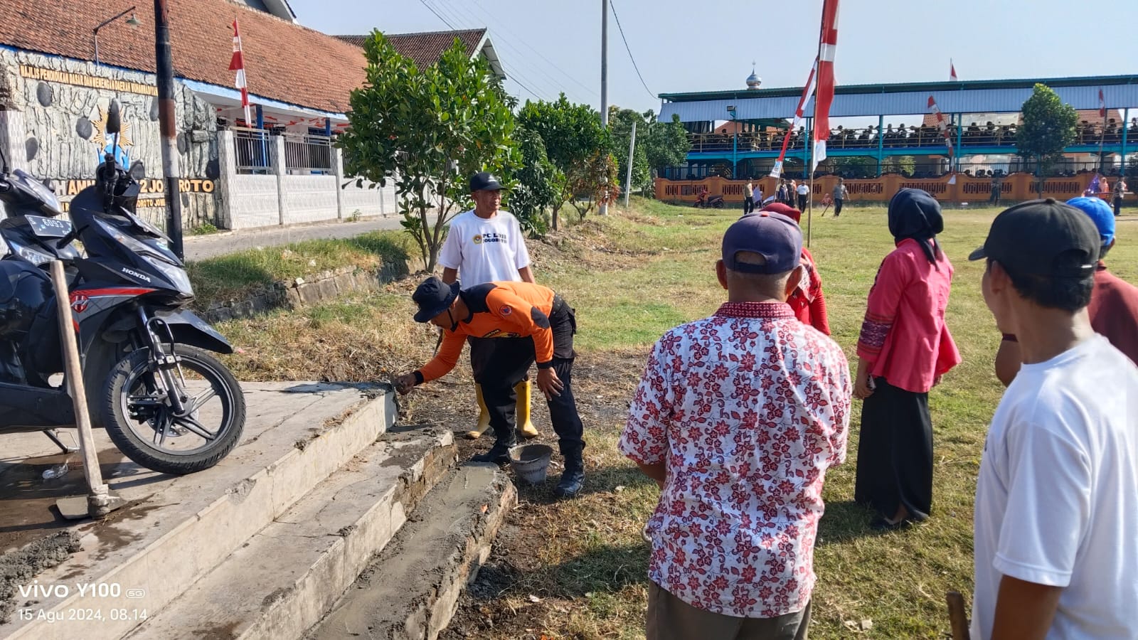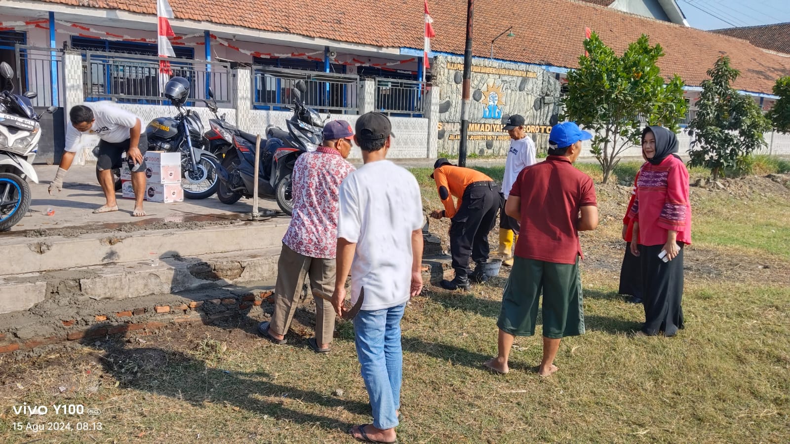 KERJA BHAKTI PEMBERSIHAN LAPANGAN UPACARA DAN PEMASANGAN BENNER HUT KE 79 PROKLAMASI KEMERDEKAAN STAF KECAMATAN JOGOROTO BERSAMA ANGGOTA KORAMIL, POLSEK DAN LDII JOGOROTO PADA TANGGAL 15 AGSTUS 2024