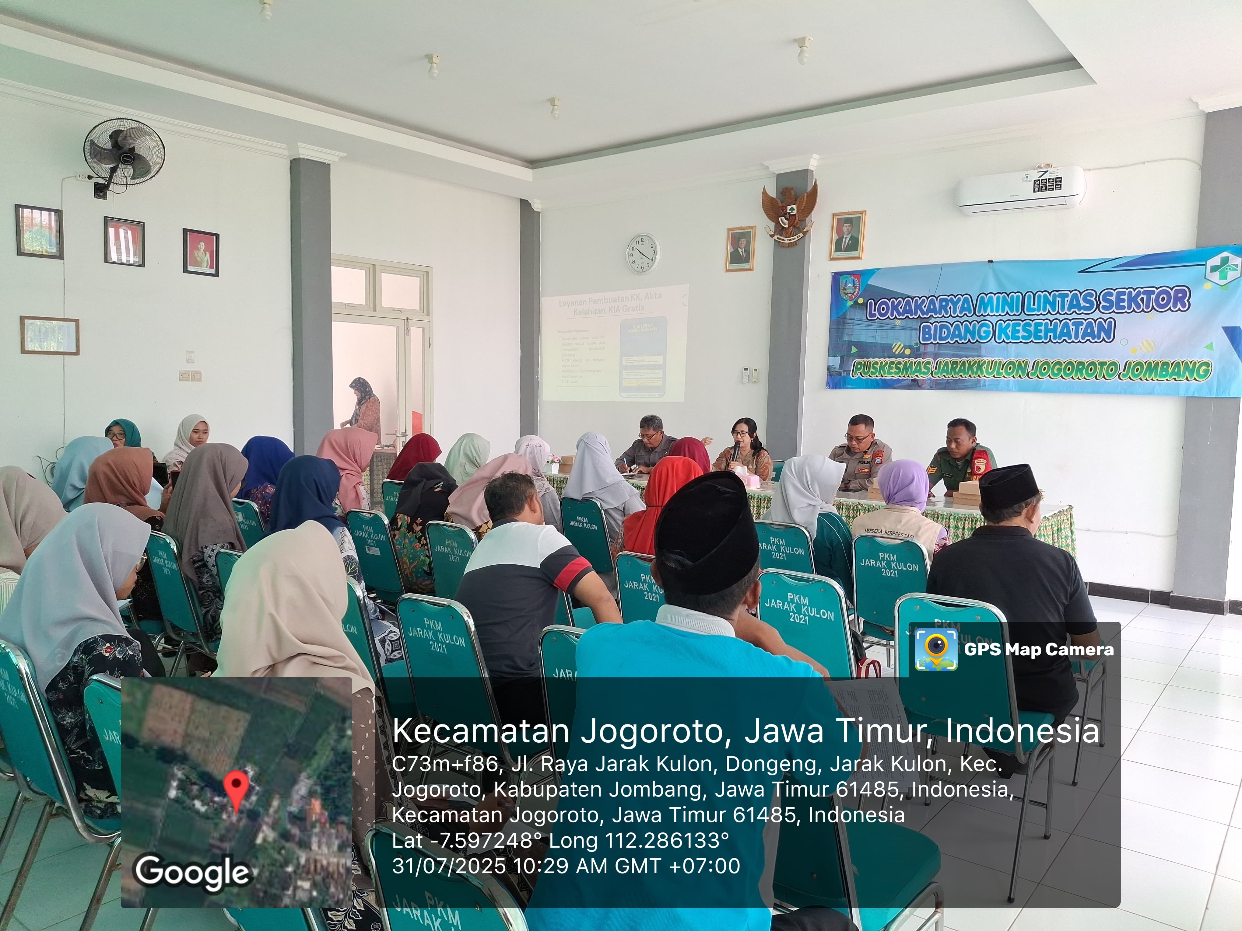 Pada hari Kamis, tanggal 31 Juli 2025, di Ruang Pertemuan Puskesmas Jarakkulon Jarakkulon, mulai pukul 09.00 WIB s/d selesai, dilaksanakan Lokakarya Mini Lintas Sektor. Yang mengundang Camat Jogoroto, yang diundang Forkopincam Jogoroto, Ketua TP PKK Desa, Kepala SD/MI, SMP/Mts se wilayah Puskesmas Jarakkulon. Dengan tema utama Penurunan Stunting, Pemeriksaan TBC dan Pemeriksaan Kesehatan Gratis (PKG) di Desa dan Sekolah.