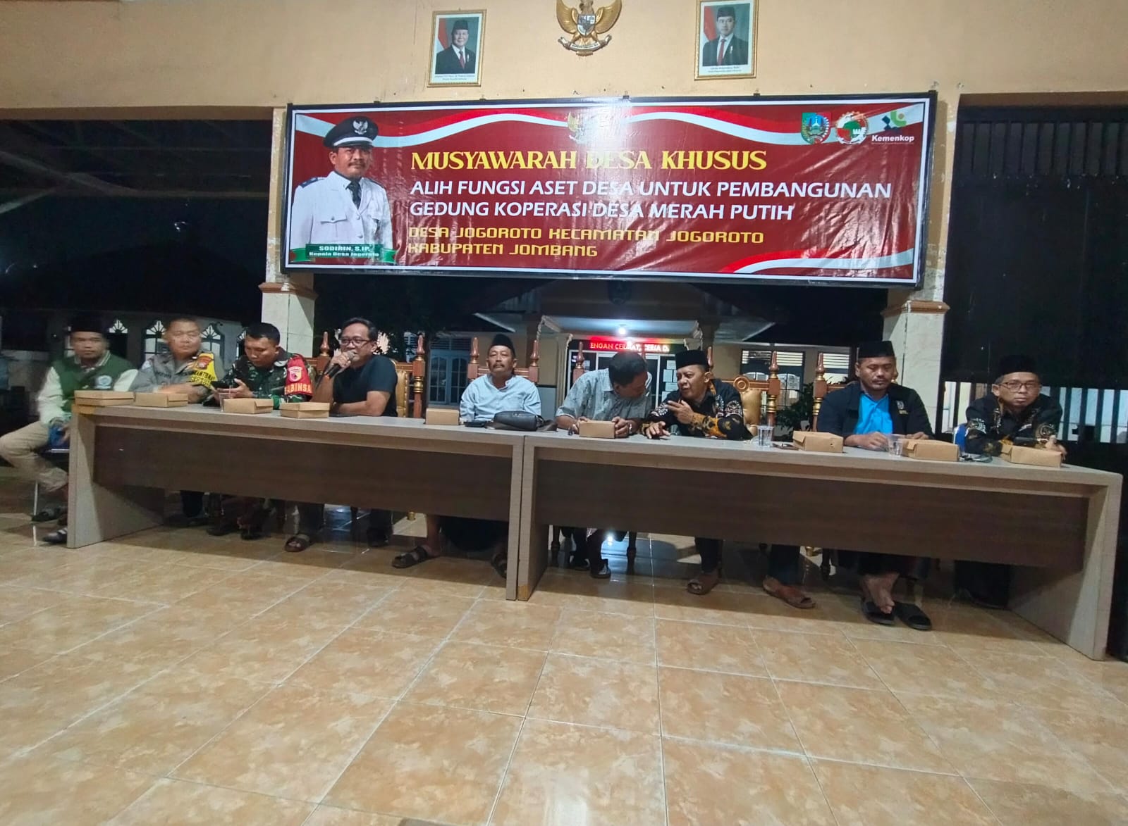 Pada hari Selasa, tanggal 18 Novenber 2025, di Balai Desa Jogoroto, mulai pukul 19.00 WIB s/sd selesai, dilaksanakan Musyawarah Desa Khusus Alih Fungsi Aset Desa Untuk Pembangunan Gedung Koperasi Desa Merah Putih Desa Jogoroto Kecamatan Jogoroto. Yang mengundang BPD Jogoroto, yang hadir Kasi PMD, Kepala Desa, BPD, Kepala KDMP dan Pengurus, Babinsa dan Babinkabtimas, Pendamping Desa, Perangkat Desa, Toga dan Tomas Desa Jogoroto.
