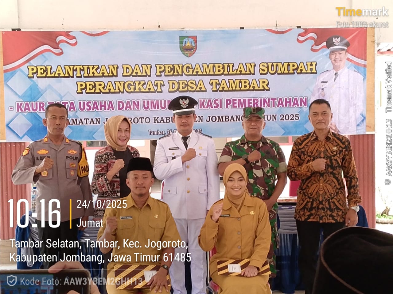Pada hari Jum’at, tanggal 24 Oktober 2025, di Balai Desa Tambar, mulai pukul 09.00 WIB s/d selesai, dilaksanakan Pelantikan Perangkat Desa Tambar. Yang melantik Kepala Desa Tambar, yang dilantik 2 (dua) orang, yaitu Kaur Tata Usaha dan Umum dan Kasi Tata Pemerintahan. Ikut diundang Muspika Kecamatan Jogoroto, Ketua TP PKK Desa, BPD Tambar, Tokoh Masyarakat dan Keluarga Perangkat yang dilantik.