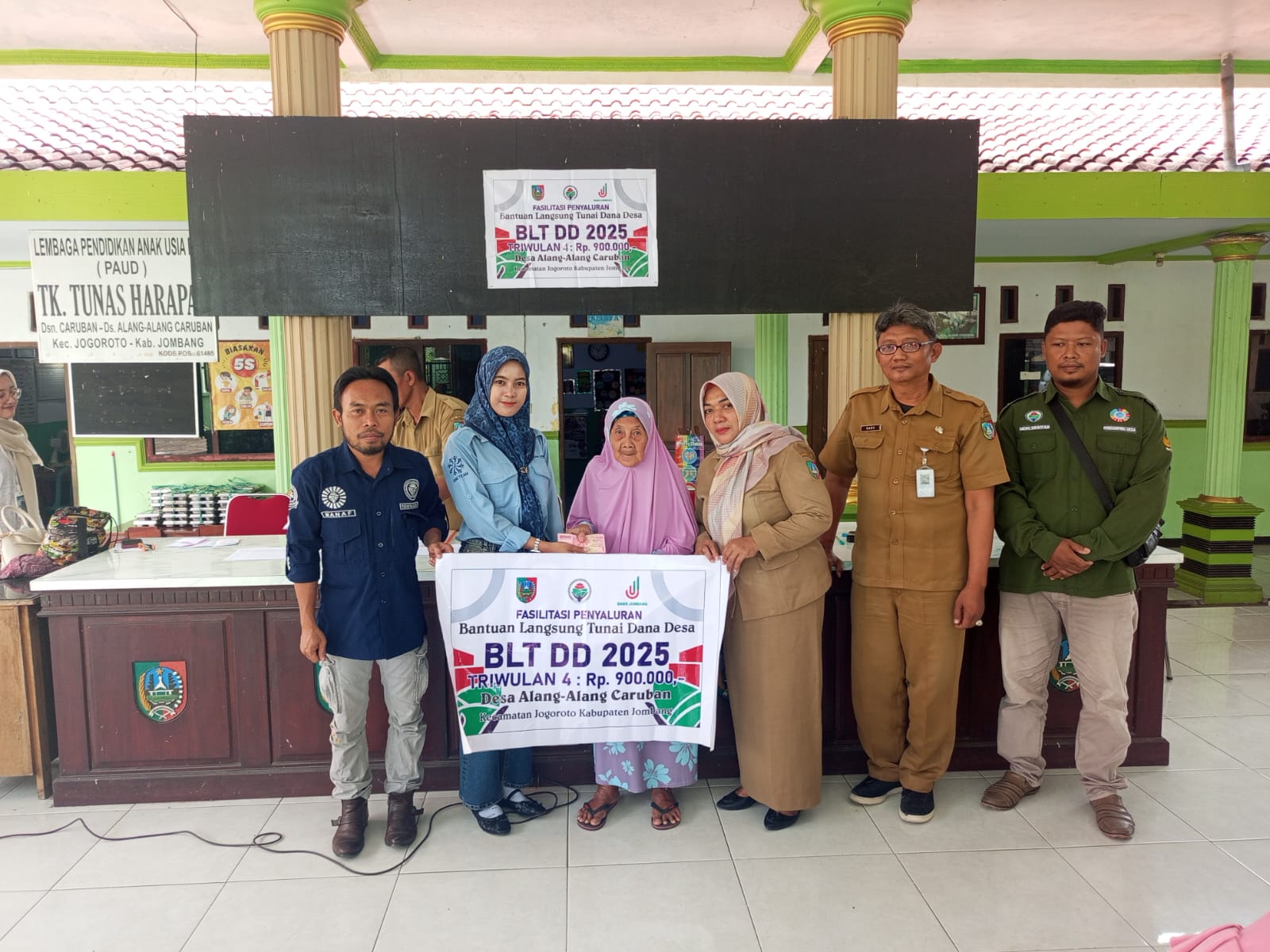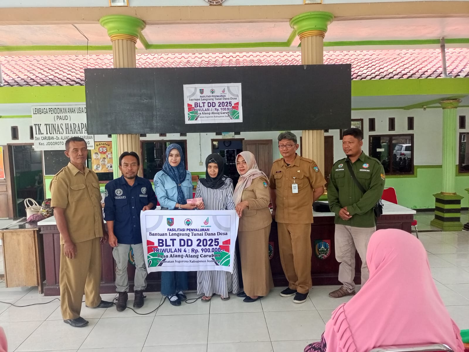 Pada hari Selasa, tanggal 16 Desember 2025, di Pendopo Desa Alang-Alang Caruban, mulai pukul 09.00 s/d 10.00 WIB, dilaksanakan Penyaluran Penyaluran BLT DD Tahap IV Tahun 2025 Desa Alang-Alang Caruban Kecamatan Jogoroto sebanyak 31 KPM. Pelaksana Petugas Bank Jombang, didampingi Petugas Kecamatan dan Pendamping Desa.