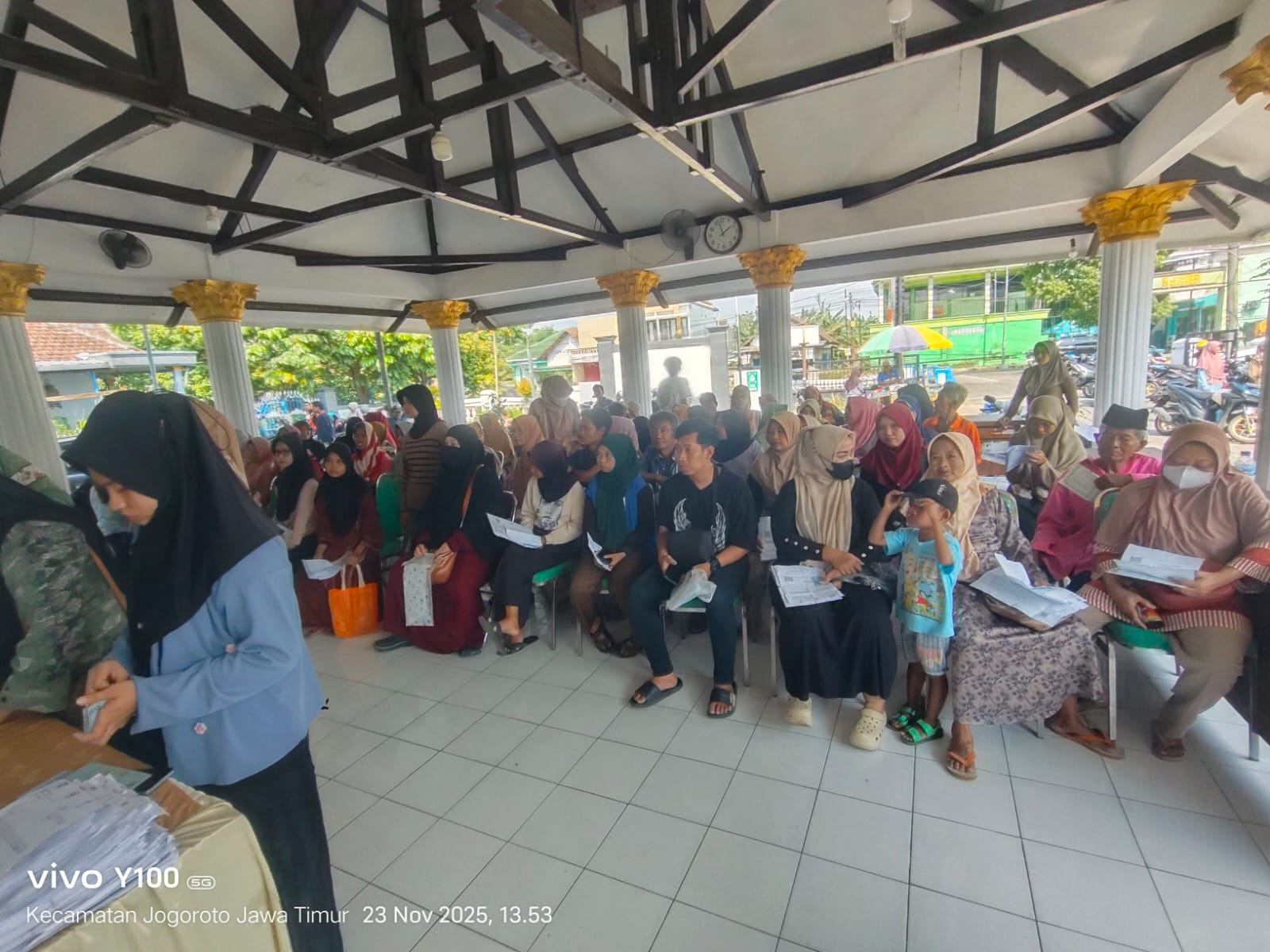 Pada hari Minggu, tanggal 23 November 2025, di Pendopo Kecamatan Jogoroto, mulai pukul 07.00 WIB s/d selesai, dilaksanakan Penyaluran BLT Kesra Tahun 2025 oleh PT. POS Indonesia di Kecamatan Jogoroto Alokasi Desa Mayangan dan Desa Janti. Hal ini dalam rangka menindaklanjuti Surat PT. POS Indonesia Jombang Nomor: 481/Umum/MS/10/1125 tanggal 21 November 2025 perihal Penyaluran BLT Kesra.