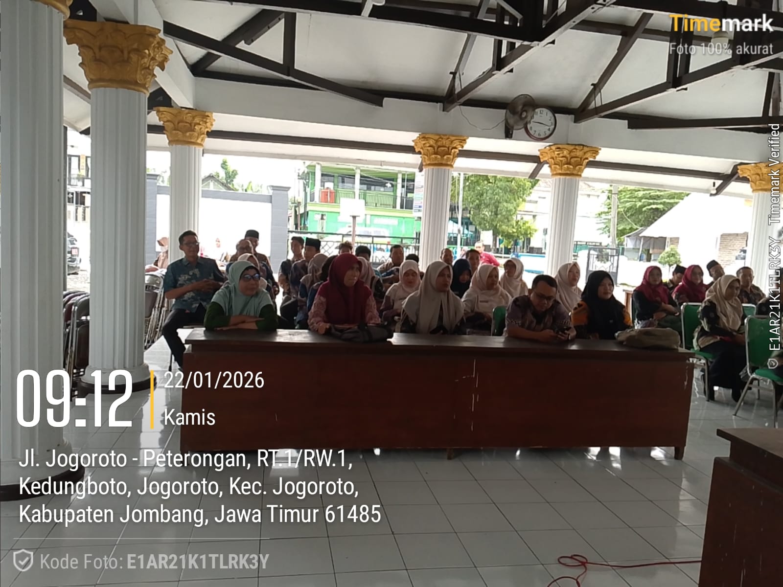 Pada hari Kamis, tanggal 22 Januari 2026, di Pendopo dan Ruang Pertemuan PKK Kecamatan Jogoroto, mulai pukul 09.00 WIB s/d selesai, dilaksanakan Perekaman Data Presensi Elektronik SIAP ASN. Yang mengundan Kepala BKPSDM Kabupaten Jombang, pelaksana Tim dari BKPSDM, yang melaksanakan perekaman dari Kecamatan Jogoroto 2 orang, Dinas Kesehatan (Puskesmas) 28 orang, Dinas Pendidikan dan Kebudayaan 71 orang. Kegiatan tersebut Sehubungan dengan Keputusan Bupati Jombang tanggal 21 Oktober 2025 Nomor: 800.1.2.5/660/415.01/2025 tentang Pengangkatan Pegawai Pemerintah Dengan Perjanjian Kerja Paruh Waktu, guna pengendalian evaluasi dan pembinaan disiplin ASN.
