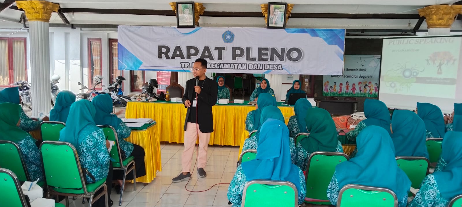 Pada hari Rabu, tanggal 11 Pebruari 2026, di Pendopo Kecamatan Jogoroto, mulai pukul 09.00 WIB s/d selesai, dilaksanakan Pleno TP PKK Kecamatan Jogoroto Bulan Pebruari 2026, Yang mengundang Ketua TP PKK, yang diundang Ketua TP PKK Desa beserta Sekretaris, 1 orang Pokja II, 1 orang Pokja IV, Petugas Pleno 1 paket dari TP PKK Desa Jogoroto. Pelaksana PKHP PKK Bidang Kesejahteraan Keluarga, Materi Publick Speaking dengan Narasumber Muhammad Fuad.