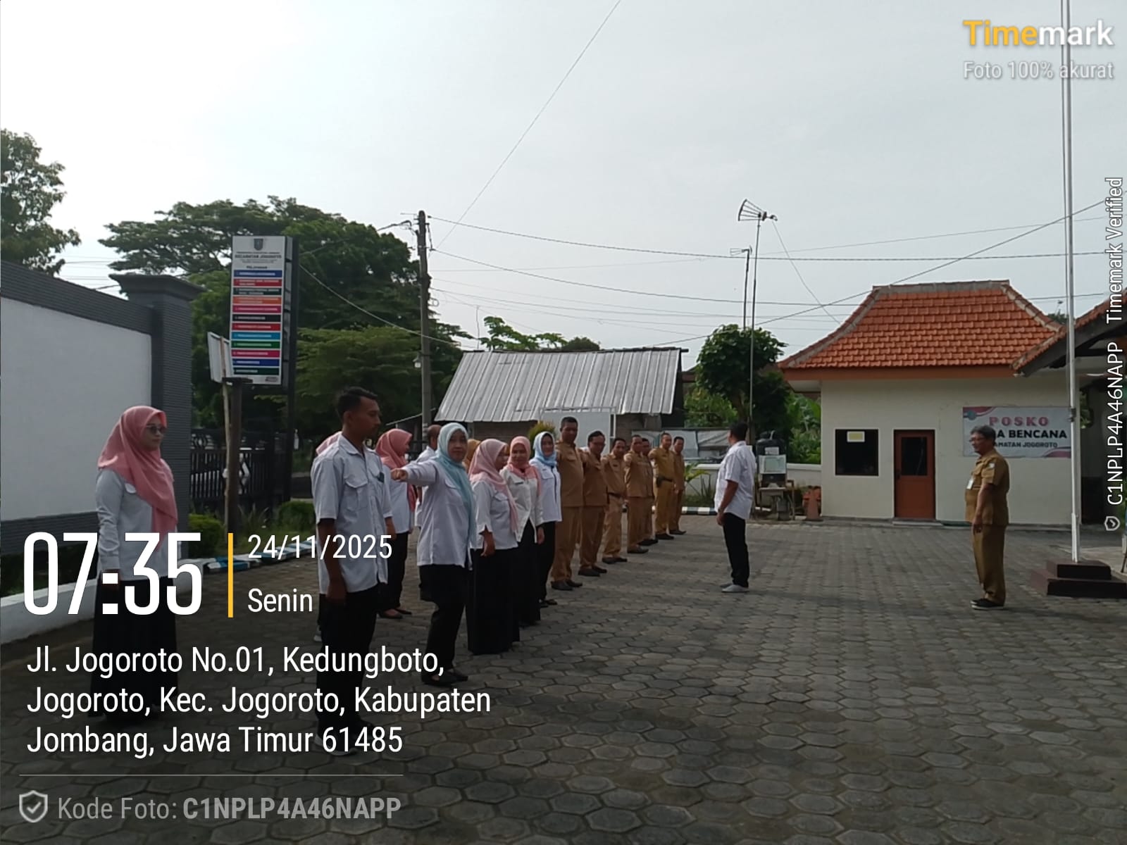 Pada hari Senin, Tanggal 24 November 2025, di halaman Kantor Kecamatan Jogoroto, mulai pukul 07.30 WIB s/d selesai, PPPK PKH Kecamatan Jogoroto pertama kali menjadi komandan apel pagi, pembina apel Sekretaris Kecamatan.
