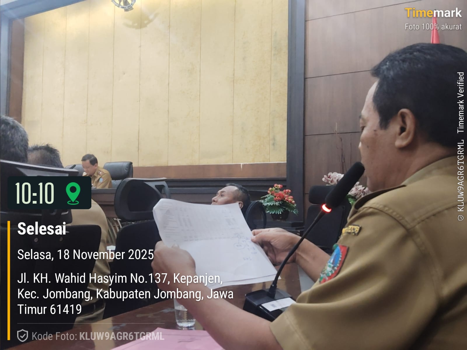 Pada hari Selasa, tanggal 18 November 2025, di Ruang Soeroadingrat I Pemerintah Kabupaten Jombang, mulai pukul 08.30 WIB s/d selesai, Camat Jogoroto yang diwakili Kasi Tapem mengikuti Rapat Dinas di Ruang Soeroadingrat I Pemerintah Kabupaten Jombang dengan materi utama Evaluasi serapan Anggaran Tahun 2025. Yang mengundang Sekretaris Daerah Kabupaten Jombang, yang diundang seluruh Kepala OPD se Kabupaten Jombang. Yang membuka acara Sekretaris Daerah, yang memberi pengarahan Wakil Bupati Jombang. Ikut mendampingi Asisten II dan Asisten III Sekdakab Jombang.