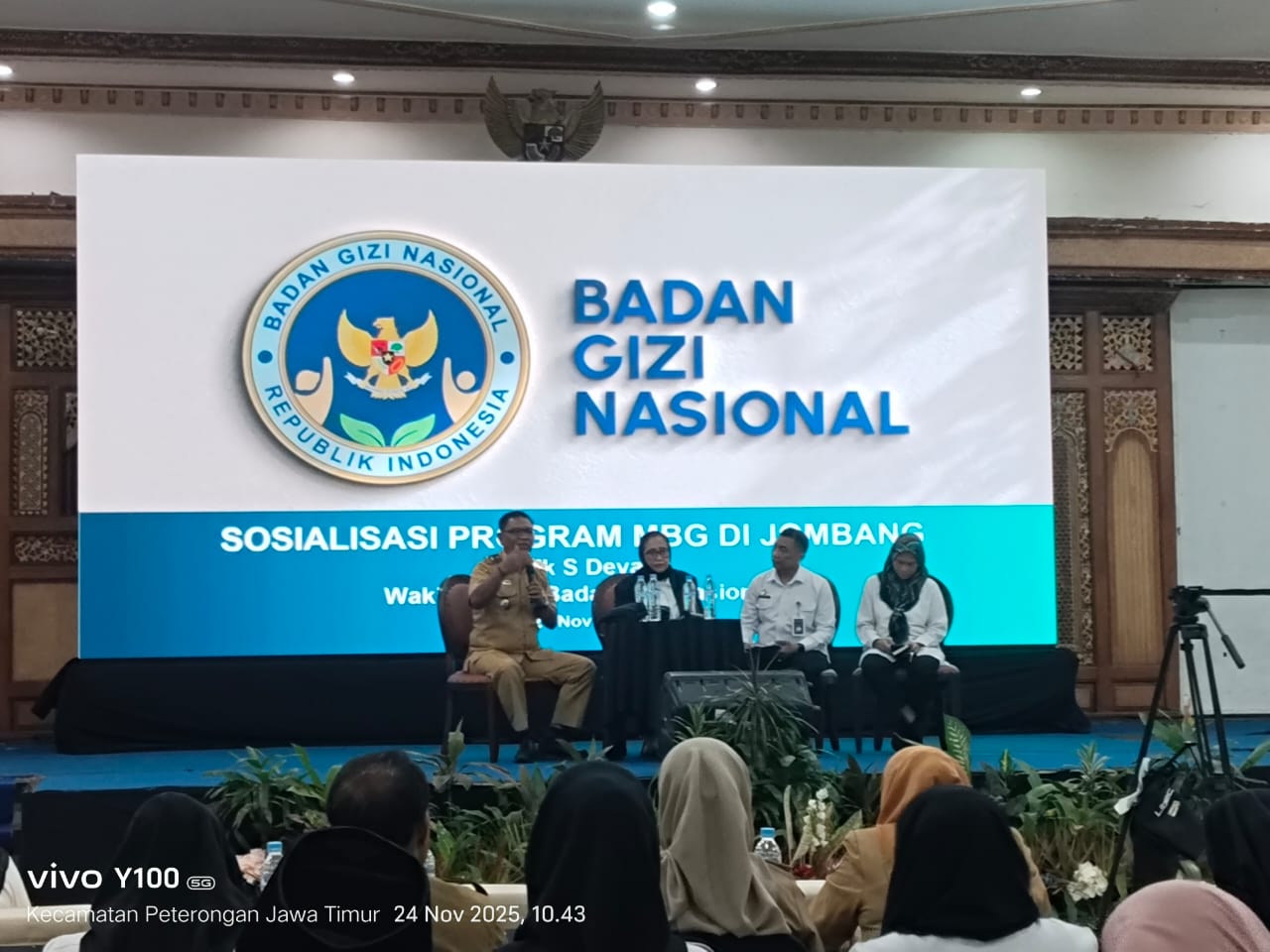 Jl. Soekarno - Hatta No.25, Nglungge, Keplaksari, Kec. Peterongan, Kabupaten Jombang, Jawa Timur 61481, mulai pukul 07.00 WIB s.d. selesai, Dalam rangka mengoptimalkan pelaksanaan pemantauan dan pengawasan Satuan Pelayanan Pemenuhan Gizi (SPPG) di Provinsi Jawa Timur, diksanakan Rapat Koordinasi dan Evaluasi bersama Forkopimda, Kasatpel, Yayasan, Mitra, Koordinator Wilayah, dan Koordinator Kecamatan di Kabupaten Jombang.