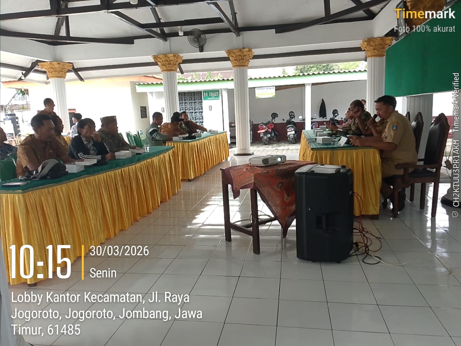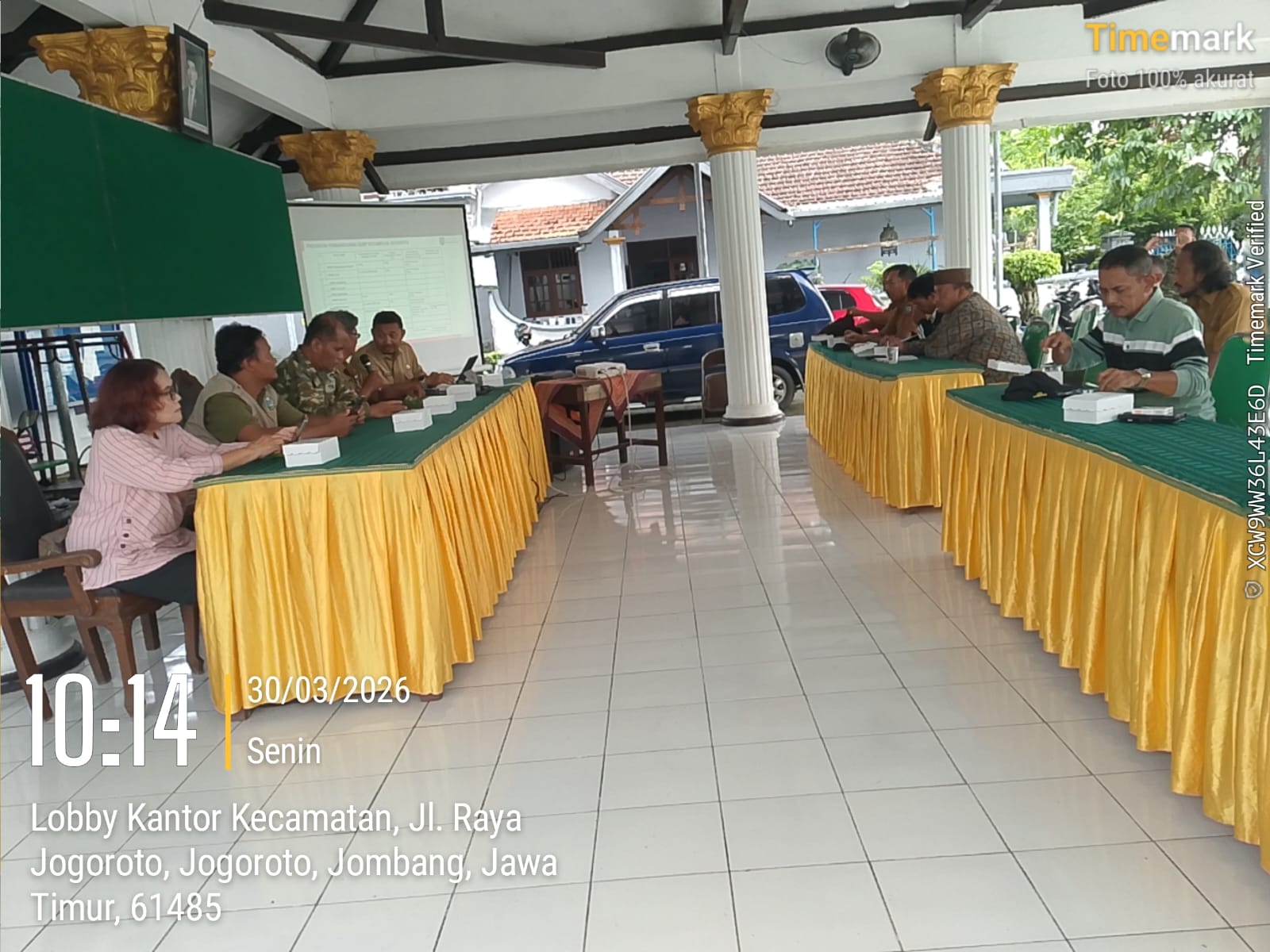 Pada hari Senin, tanggal 30 Maret 2026, di Pendopo Kecamatan Jogoroto, mulai pukul 09.00 WIB s/d selesai, dilaksanakan Rapat Monitoring KDMP Kecamatan Jogoroto Dalam Rangka Mendukung Percepatan Pelaksanaan Program Koperasi Desa Merah Putih di Kabupaten Jombang. Yang mengundang Camat Jogoroto, yang diundang Kepala Desa, Ketua Pengurus KDMP dan Busnise Administasi se Kecamatan Jogoroto. Ikut diundang sekaligus sebagai narsumber Danramil Jogoroto dan hadir pula Pendamping DD. Dari 11 Desa sudah 9 Desa yang sudah membangun KDMP, dari 11 Desa yang sudah RAT 5 Desa, yang sudah membuat jadwal 4 Desa, yang belum membuat jadwal 3 Desa. Pada kesempatan tersebut juga diadakan pemilihan Koordinator, Sekretaris dan Bendahara Perwakilan KDMP Kecamatan Jogoroto yang dipandu Business Assistant (BA) KDKMP Kecamatan Jogoroto.
