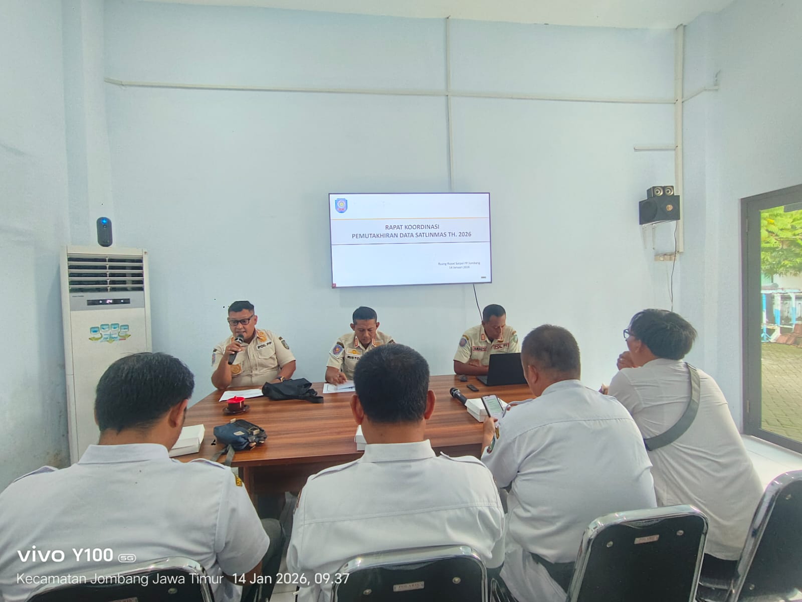 Pada hari Rabu, tanggal 14 Januari 2026, di Ruang rapat Satpol PP Kabupaten Jombang, Kasi Trantib Kecamatan Jogoroto, mengikuti Rapat Pemutakhiran Data Satlinmas. Yang mengundang Kepala Satuan Polisi Pamong Praja, yang diundang Kasi Trantib se Kabupaten Jombang. Rapat ini bertujuan : 1) Validasi keanggotaan Satlinmas berdasarkan SK Pengangkatan dan Pengesahan Anggota Satlinmas 2026; 2) Persiapan penyelenggaraan Pelatihan Dasar Satlinmas TH. 2026; 3) Persiapan pengamanan Pilkades Jombang Th. 2027 dan 4) Optimalisasi Kegiatan Satlinmas dalam mendukung SPM dan Desa Mantra.