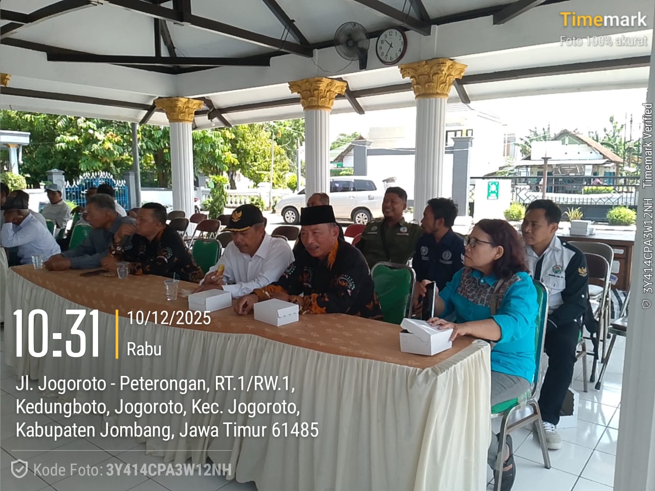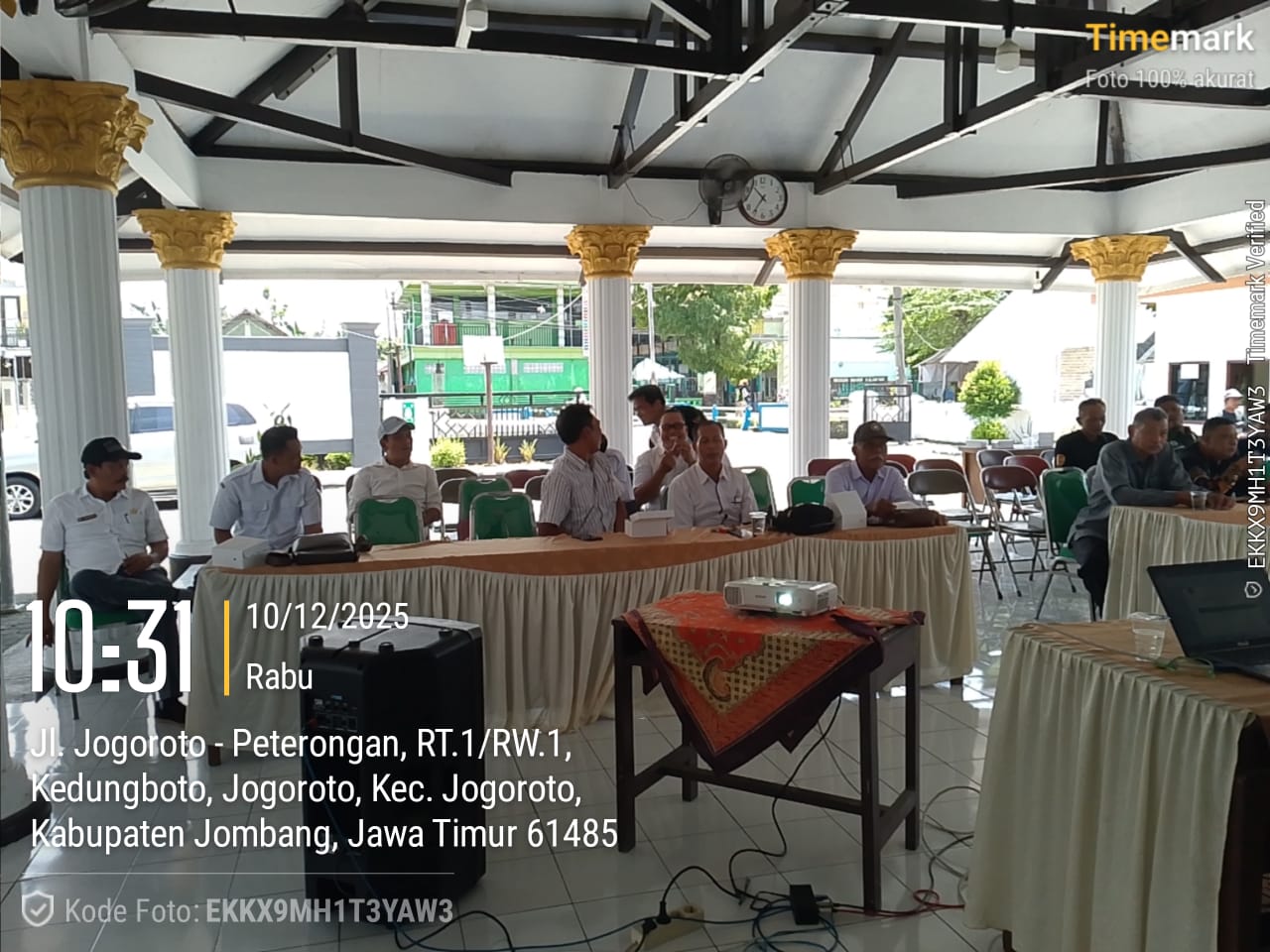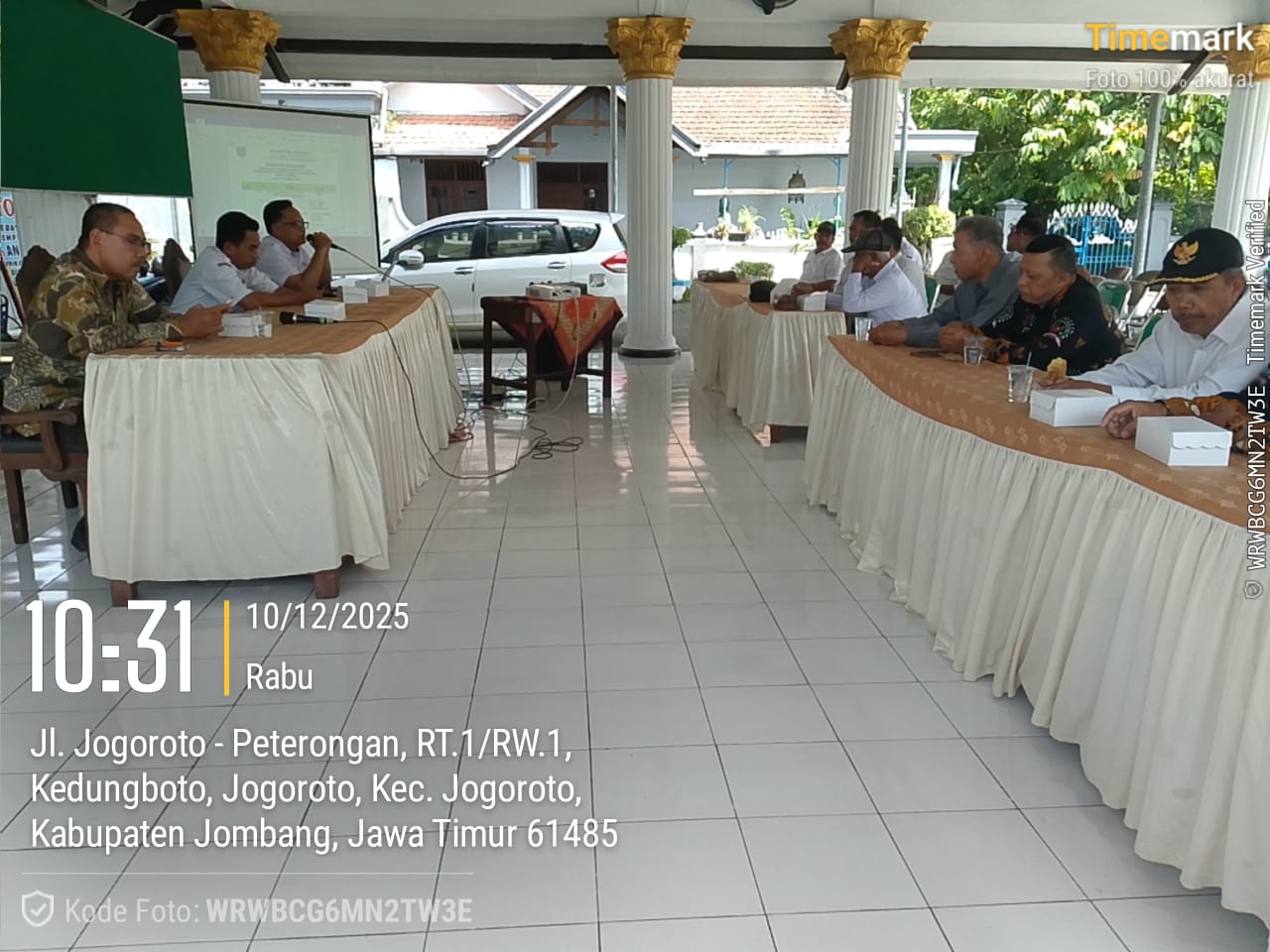 Pada hari Rabu, tanggal 10 Desember 2025, di Pendopo Kecamatan Jogoroto, mulai pukul 09.00 WIB s/d selesai, dilaksanakan Rapat Persiapan Pelatihan Kapasitas Aparatur Desa di Kecamatan Jogoroto. Yang mengundang Camat Jogoroto, yang diundang Ketua BAKD Kecamatan Jogoroto, Kepala Desa dan Sekretaris Desa se Kecamatan Jogoroto, dan Pendamping Desa.