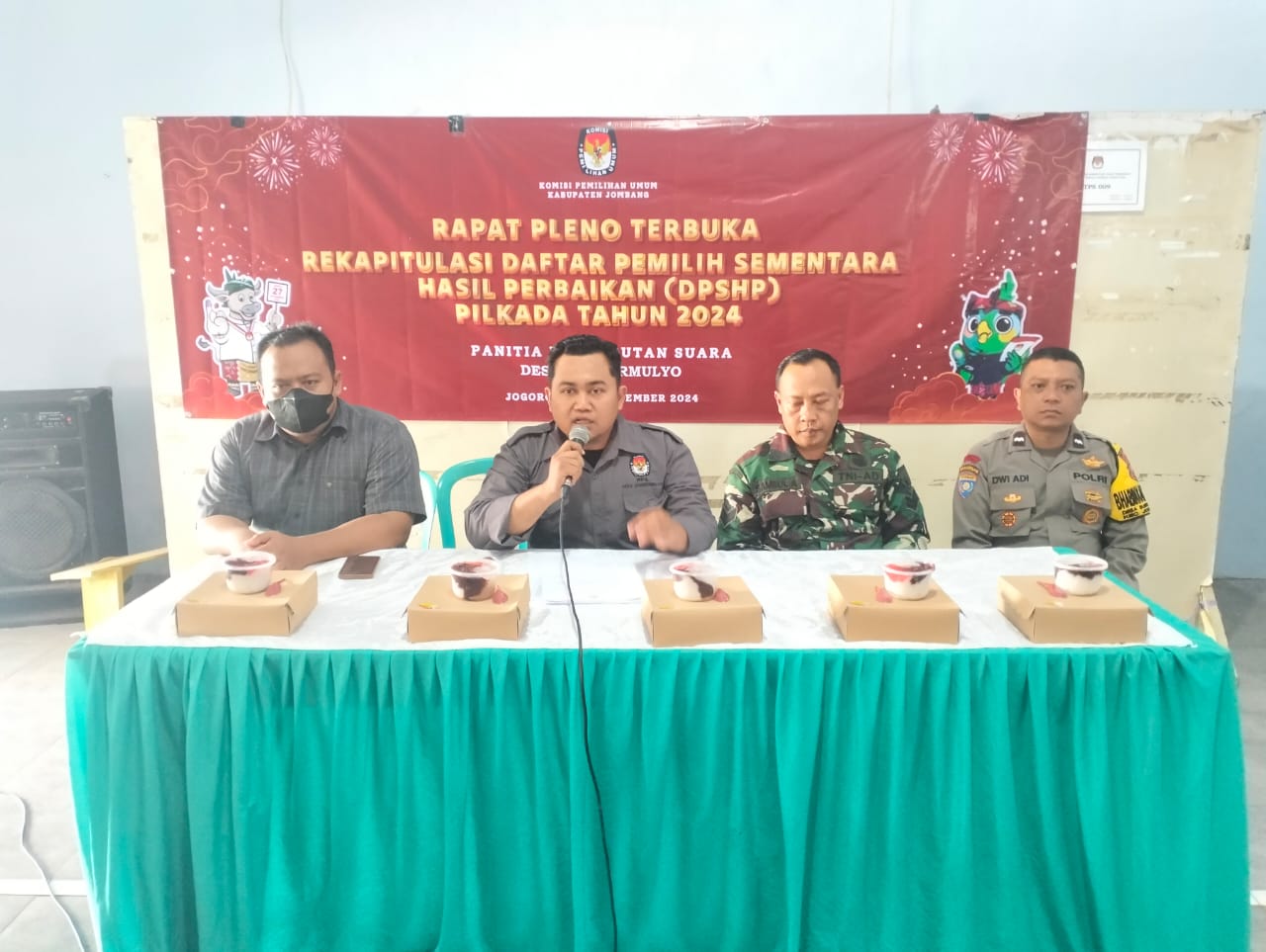 RAPAT PLENO TERBUKA REKAPITULASI DAFTAR PEMILIH SEMENTARA HASIL PERBAIKAN (DPSHP) PILKADA TAHUN 2024 PANITIA PEMILIHAN KECAMATAN (PPK/PPS) KECAMATAN JOGOROTO DESA SUMBERMULYO TANGGAL 6 SEPTEMBER 2024
