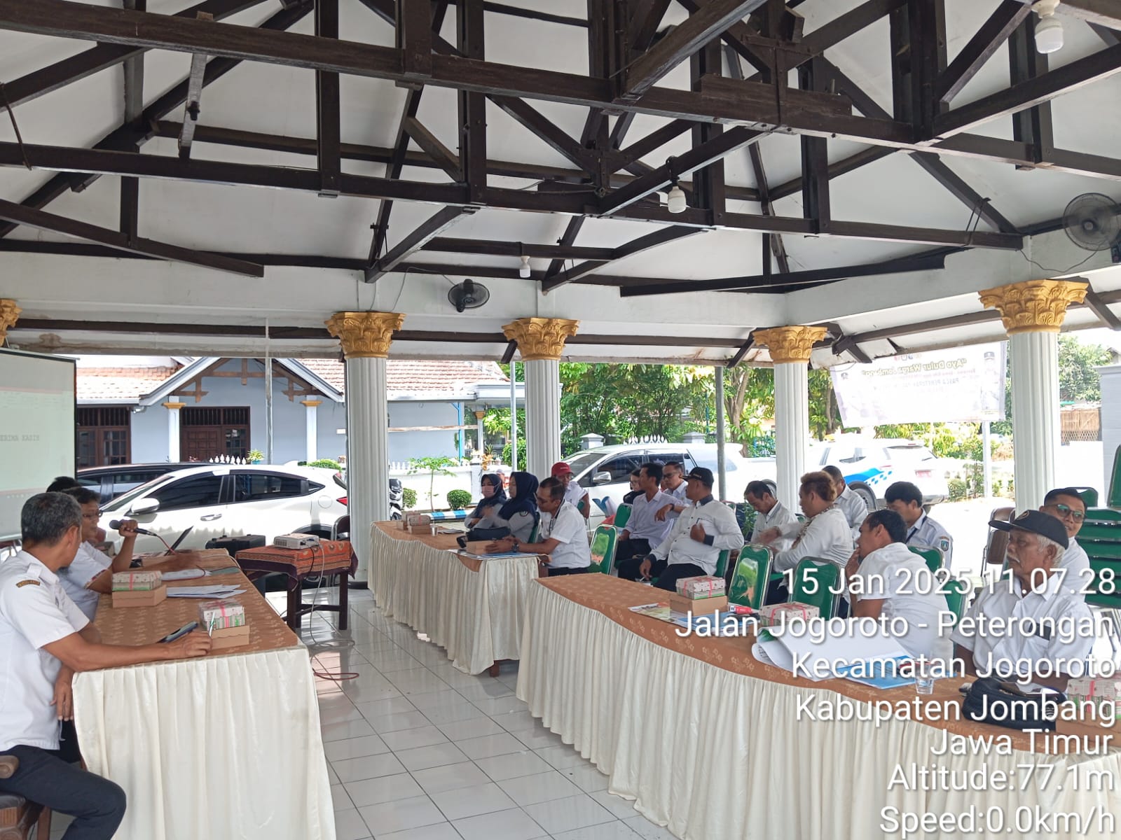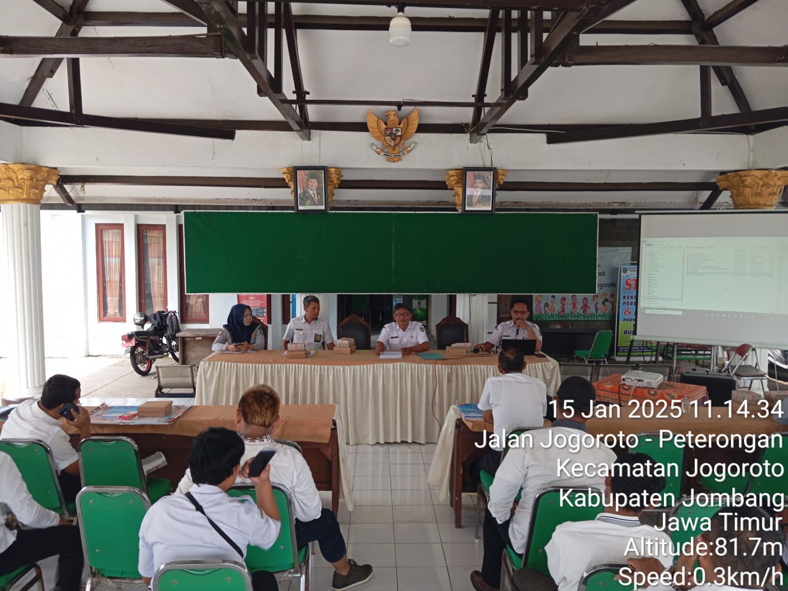 Pada hari Rabu, tanggal 15 Januari 2025, di Pendopo Kecamatan Jogoroto, mulai pkl. 08.00 WIB s/d selesai, dilaksanakan Rapat Pra Musrenbangcam (Musyawarah Perencanaan Pembangunan) Kecamatan Tahun 2025 Dalam Rangka Penyusunan RKPD Tahun 2026. Yang diundang Kepala Desa dan Sekretaris Desa se Kecamatan Jogoroto. Rapat dipimpin Kasi PMD didampingi Sekcam, Dishub dan Dinas PUPR Pemkab Jombang. Pada kesempatan tersebut juga disosialisasikan Desa Mantra 2026 kepada Peserta. Usulan prioritas di tahun 2026 terdiri dari Jalan dan PJU.