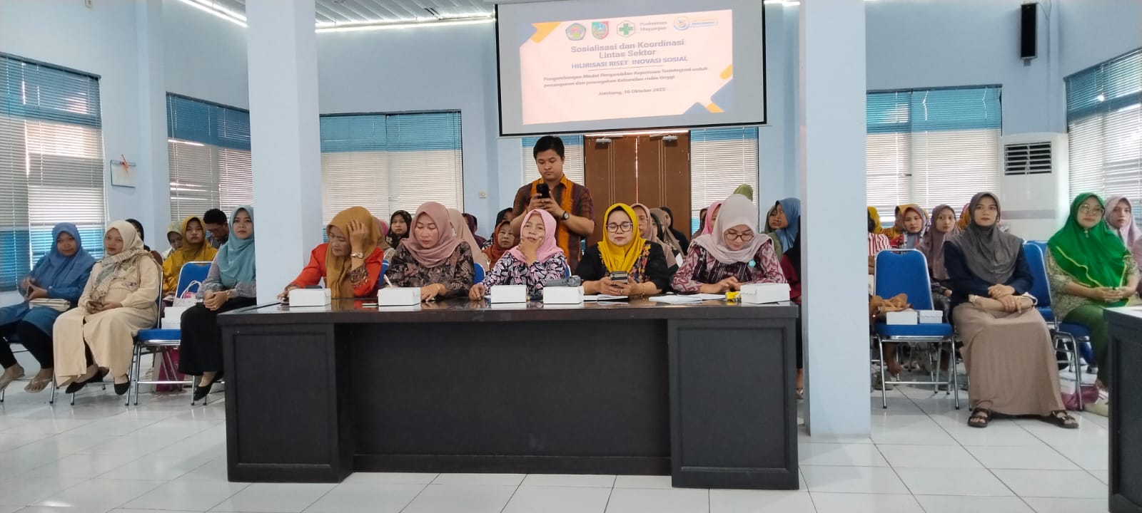 Pada hari Kamis, tanggal 16 Oktober 2025, di Ruang Pertemuan Lantai 2 Puskesmas Mayangan, mulai pukul 09.00 WIB s/d selesai, dilaksanakan Sosialisasi Dan Koordinasi Hilirisasi Riset Inovasi Sosial Penanganan Dan Pencegahan Ibu Hamil Risiko Tinggi Puskesmas Mayangan Kecamatan Jogoroto. Yang mengundang Kepala Puskesmas Mayangan, yang diundang Camat Jogoroto, Kapolsek Jogoroto, Danramel Jogoroto, Kepala KUA/PPAI Jogoroto, Koord. PLKB Kecamatan Jogoroto, Ketua TP PKK Kecamatan Jogoroto, Ketua Tim Penggerak PKK (6 Desa), Kader Wilayah Puskesmas Mayangan (1 desa diwakili 1 kader), Ibu Hamil Resiko Tinggi, Ibu Hamil Normal, Bidan Desa, Bidan Koordinator, PJ PONED, PJ Klaster, PJ Promkes.