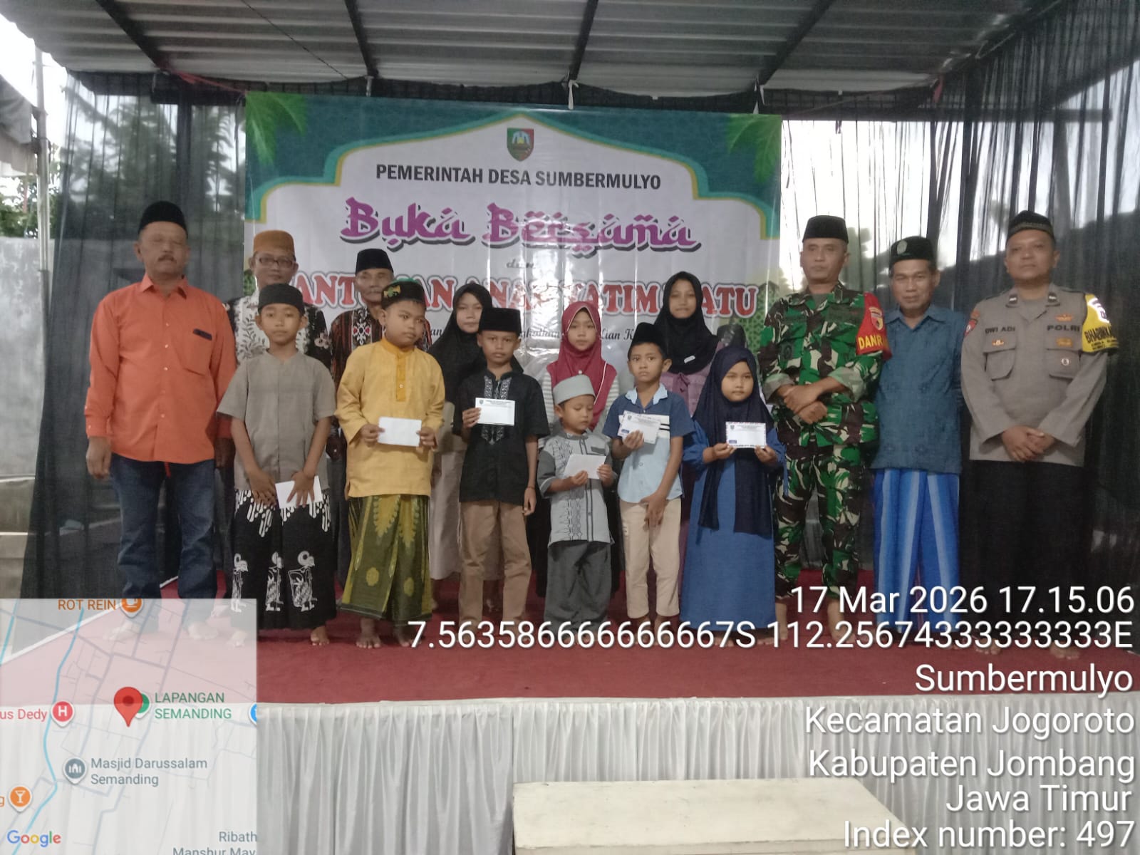 Pada hari Selasa, tanggal 17 Maret 2026, di lokasi kolam pancing Desa Sumbermulyo, mulai pukul 16.00 WIB s/d selesai, Forkopincam Kecamatan Jogoroto menghadiri Undangan Santunan Anak Yatim Piatu dan Buka Bersama di Desa Sunbermulyo Kecamatan Jogoroto.